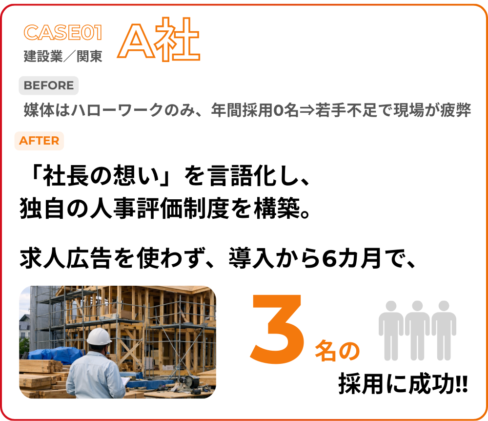 事例1:建設業(住宅建築)「若手が半年で離職 → 採用手法の見直し、評価と賃金の“見える化”で改善」