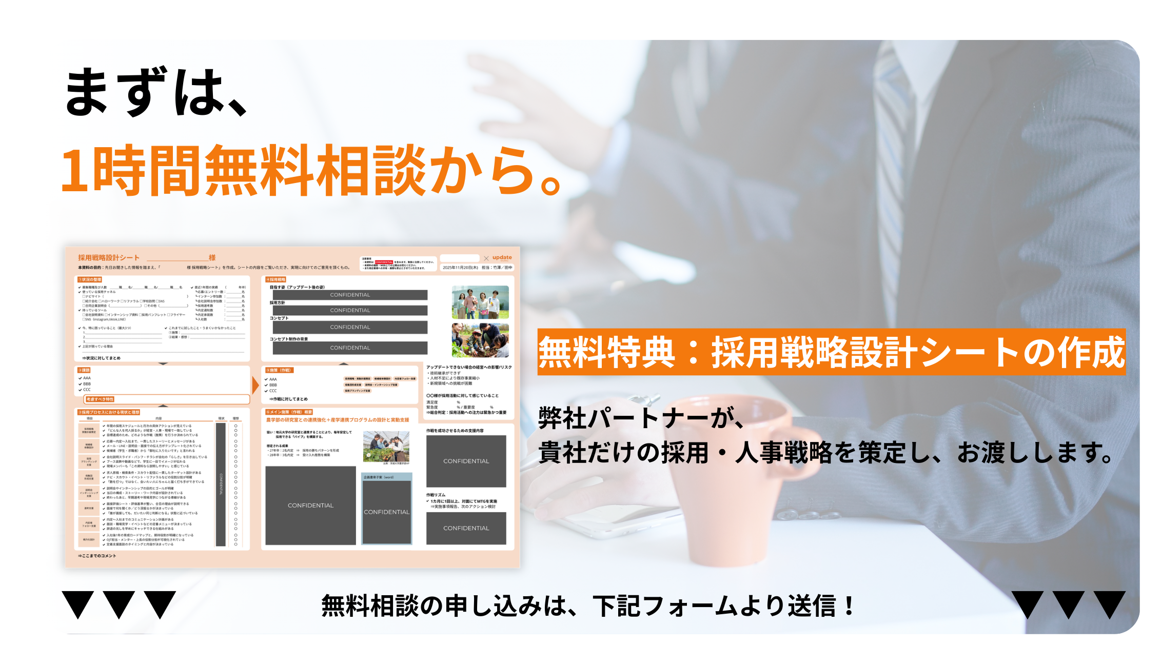 貴社の採用活動の課題を発見する、1時間無料相談を実施しております。
