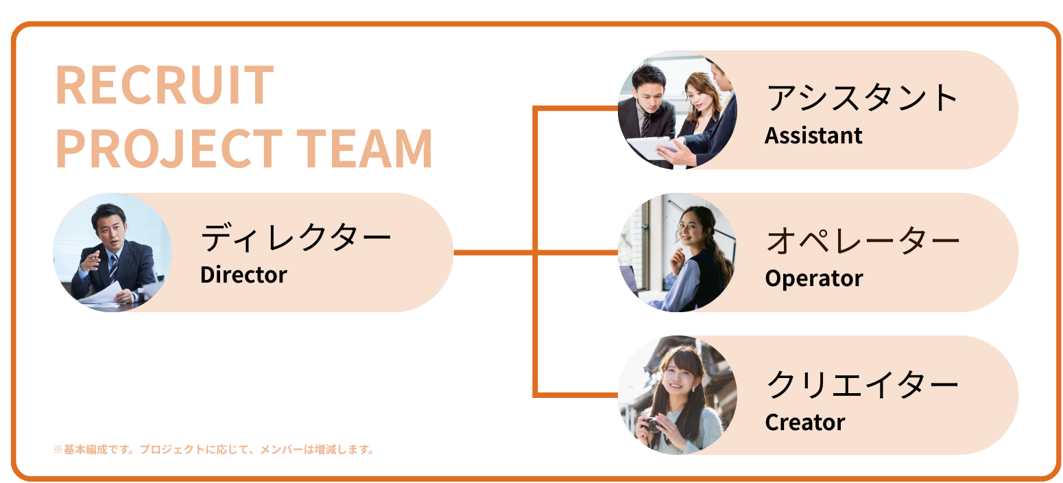戦略形成だけで終わらせません。媒体運用、スカウト配信、日程調整、候補者対応、面接設計など、必要な実務を代行または伴走し、現場を止めずに走りながら改善します。